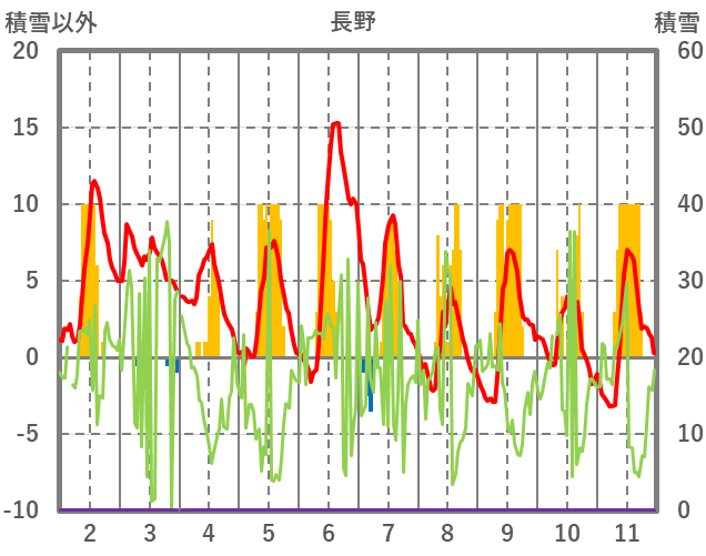 | 日 | 時 | 気温 | 降水 | 風向/風速 | 日照 | 積雪 | 降雪 |