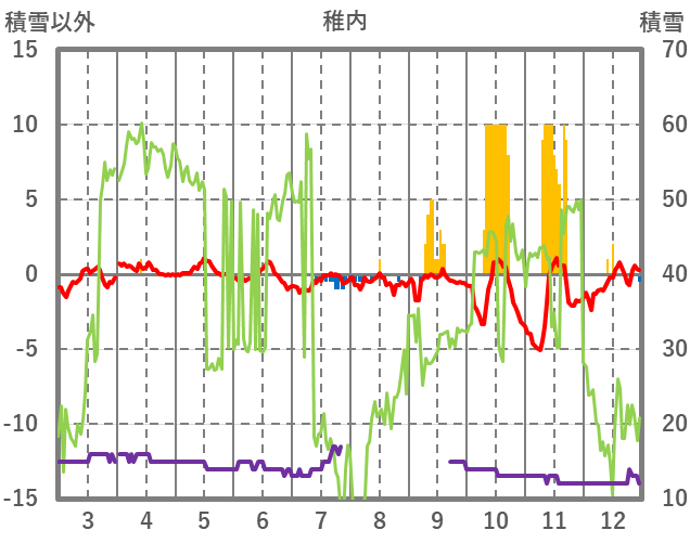 | 日 | 時 | 気温 | 降水 | 風向/風速 | 日照 | 積雪 | 降雪 |