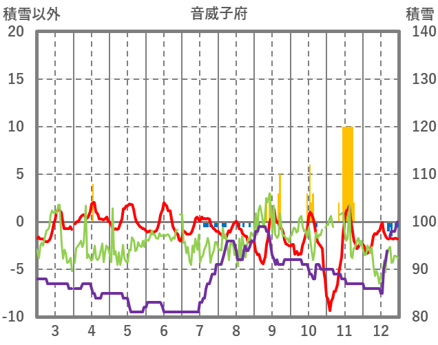 | 日 | 時 | 気温 | 降水 | 風向/風速 | 日照 | 積雪 | 降雪 |
