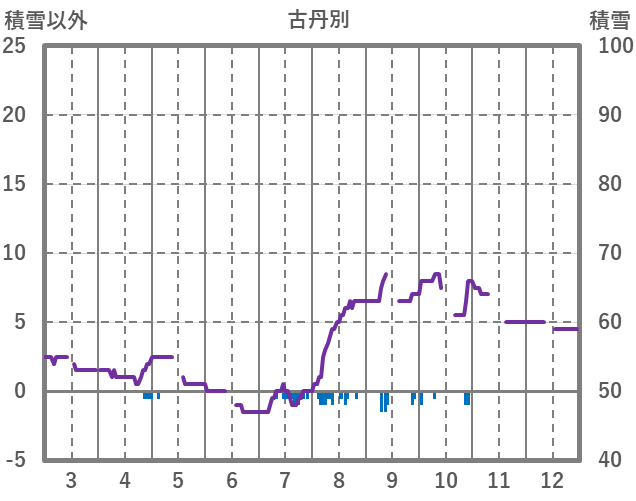 | 日 | 時 | 気温 | 降水 | 風向/風速 | 日照 | 積雪 | 降雪 |