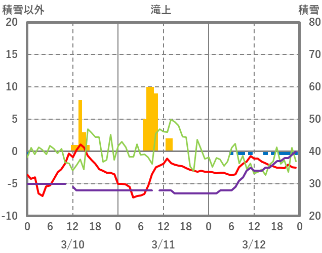 | 日 | 時 | 気温 | 降水 | 風向/風速 | 日照 | 積雪 | 降雪 |