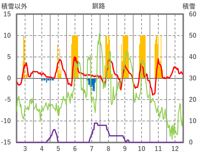 | 日 | 時 | 気温 | 降水 | 風向/風速 | 日照 | 積雪 | 降雪 |
