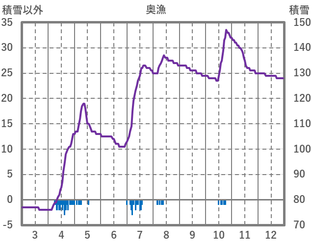 | 日 | 時 | 気温 | 降水 | 風向/風速 | 日照 | 積雪 | 降雪 |