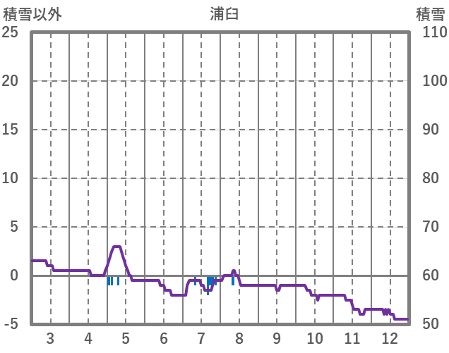 | 日 | 時 | 気温 | 降水 | 風向/風速 | 日照 | 積雪 | 降雪 |