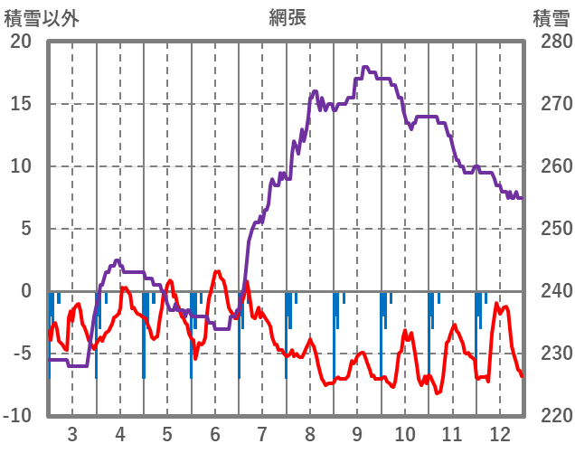 | 日 | 時 | 気温 | 降水 | 風向/風速 | 日照 | 積雪 | 降雪 |