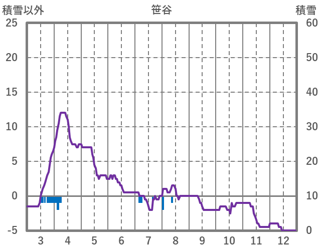 | 日 | 時 | 気温 | 降水 | 風向/風速 | 日照 | 積雪 | 降雪 |