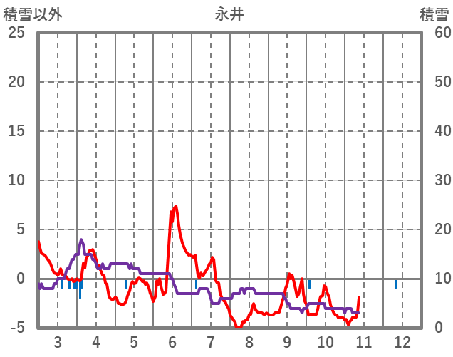| 日 | 時 | 気温 | 降水 | 風向/風速 | 日照 | 積雪 | 降雪 |