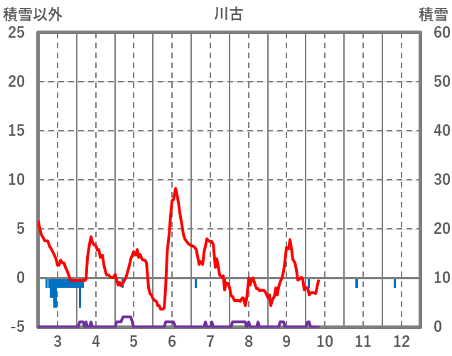 | 日 | 時 | 気温 | 降水 | 風向/風速 | 日照 | 積雪 | 降雪 |
