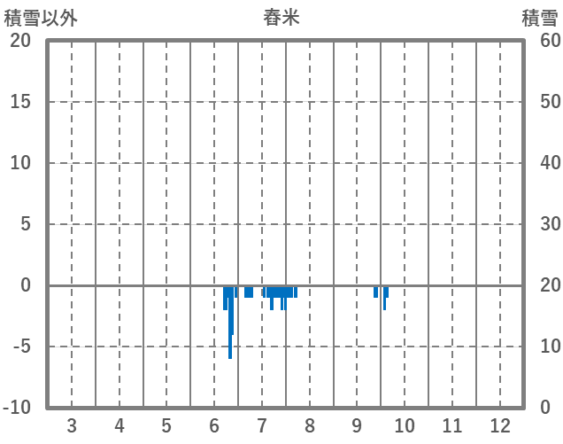 | 日 | 時 | 気温 | 降水 | 風向/風速 | 日照 | 積雪 | 降雪 |
