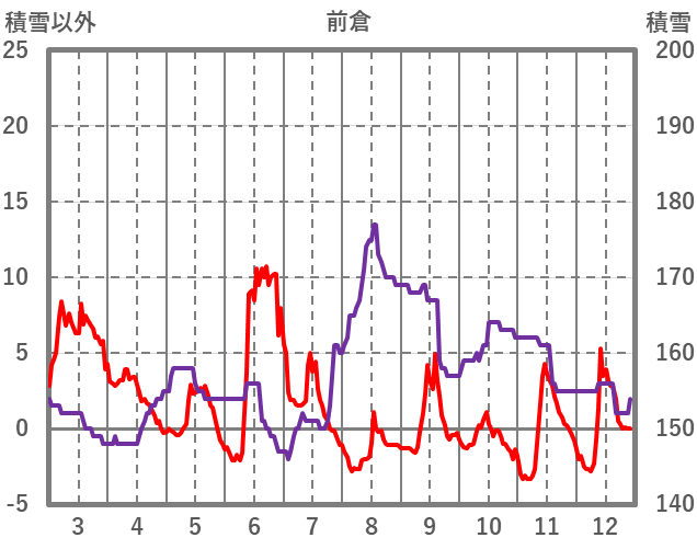 | 日 | 時 | 気温 | 降水 | 風向/風速 | 日照 | 積雪 | 降雪 |