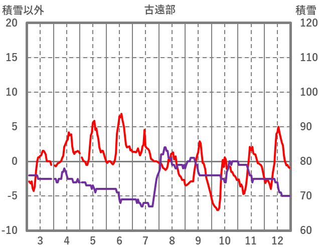 | 日 | 時 | 気温 | 降水 | 風向/風速 | 日照 | 積雪 | 降雪 |
