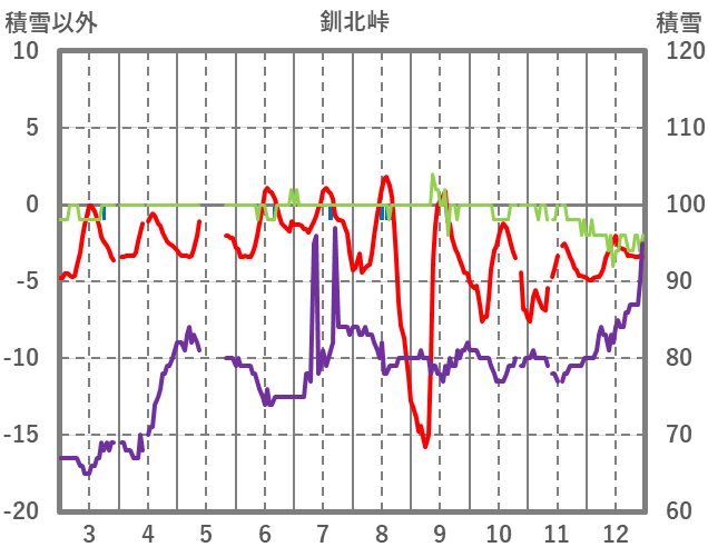 | 日 | 時 | 気温 | 降水 | 風向/風速 | 日照 | 積雪 | 降雪 |