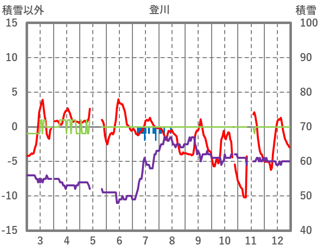 | 日 | 時 | 気温 | 降水 | 風向/風速 | 日照 | 積雪 | 降雪 |