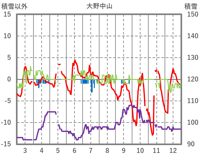 | 日 | 時 | 気温 | 降水 | 風向/風速 | 日照 | 積雪 | 降雪 |