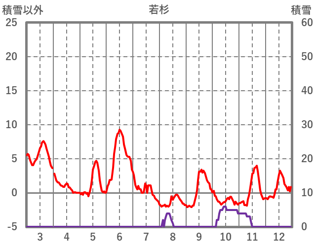 | 日 | 時 | 気温 | 降水 | 風向/風速 | 日照 | 積雪 | 降雪 |