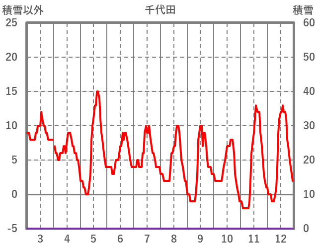 | 日 | 時 | 気温 | 降水 | 風向/風速 | 日照 | 積雪 | 降雪 |