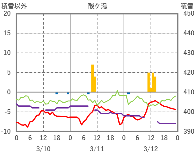 | 日 | 時 | 気温 | 降水 | 風向/風速 | 日照 | 積雪 | 降雪 |