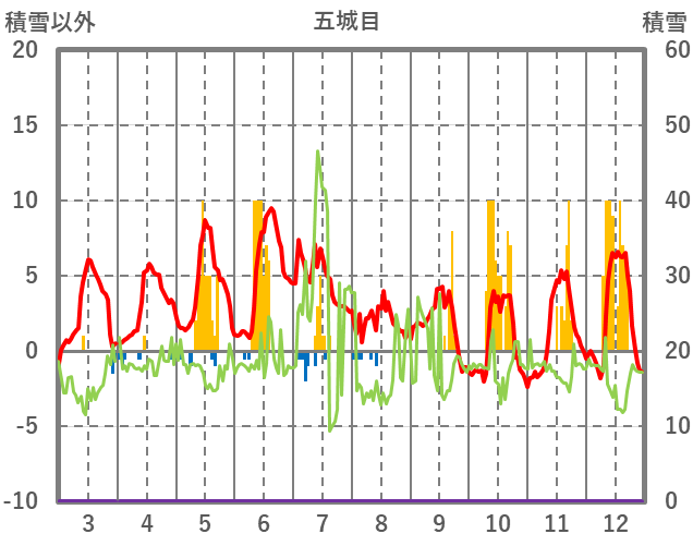 | 日 | 時 | 気温 | 降水 | 風向/風速 | 日照 | 積雪 | 降雪 |