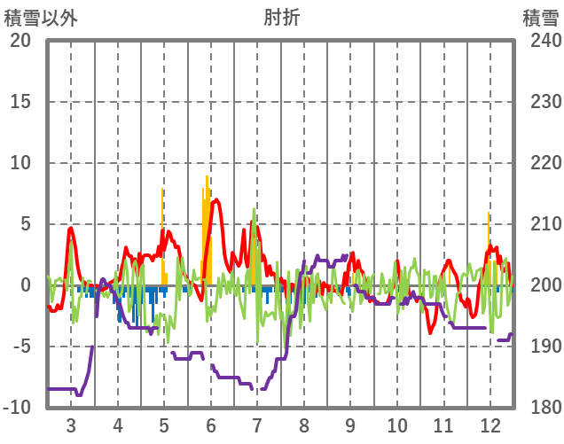 | 日 | 時 | 気温 | 降水 | 風向/風速 | 日照 | 積雪 | 降雪 |