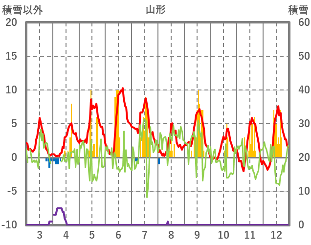 | 日 | 時 | 気温 | 降水 | 風向/風速 | 日照 | 積雪 | 降雪 |