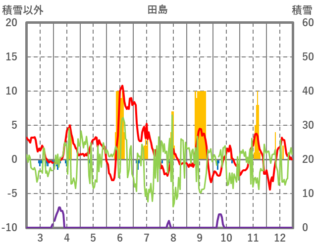 | 日 | 時 | 気温 | 降水 | 風向/風速 | 日照 | 積雪 | 降雪 |