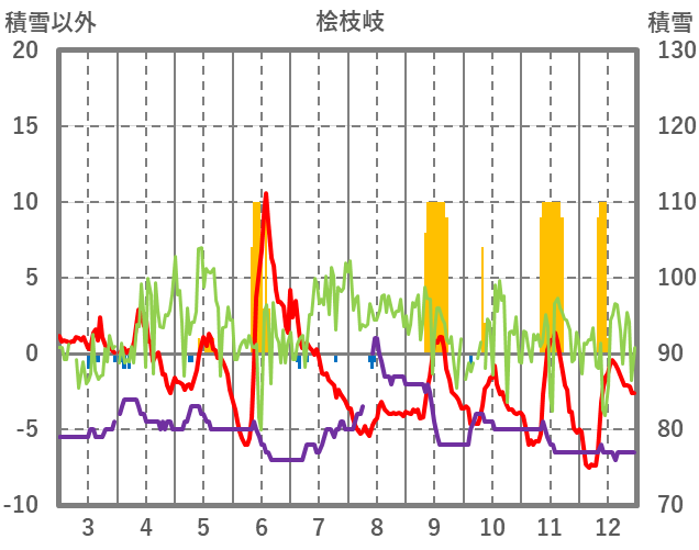 | 日 | 時 | 気温 | 降水 | 風向/風速 | 日照 | 積雪 | 降雪 |