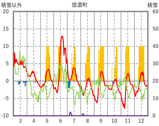 | 日 | 時 | 気温 | 降水 | 風向/風速 | 日照 | 積雪 | 降雪 |
