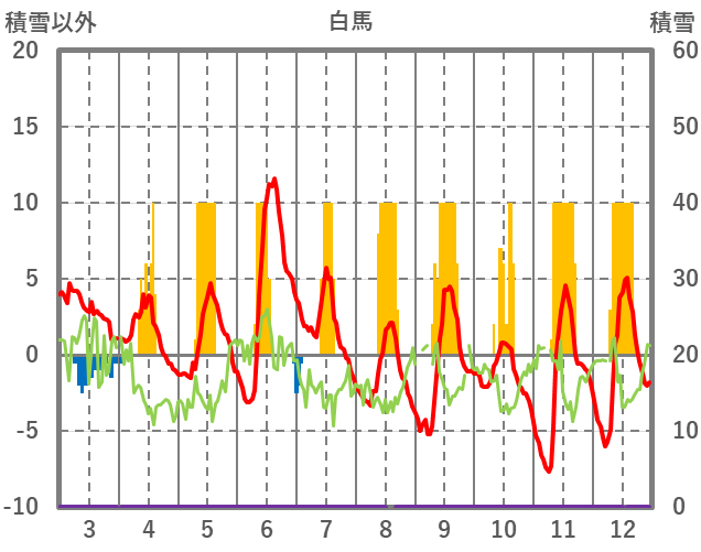 | 日 | 時 | 気温 | 降水 | 風向/風速 | 日照 | 積雪 | 降雪 |