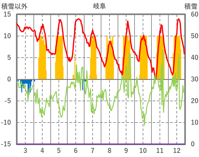 | 日 | 時 | 気温 | 降水 | 風向/風速 | 日照 | 積雪 | 降雪 |