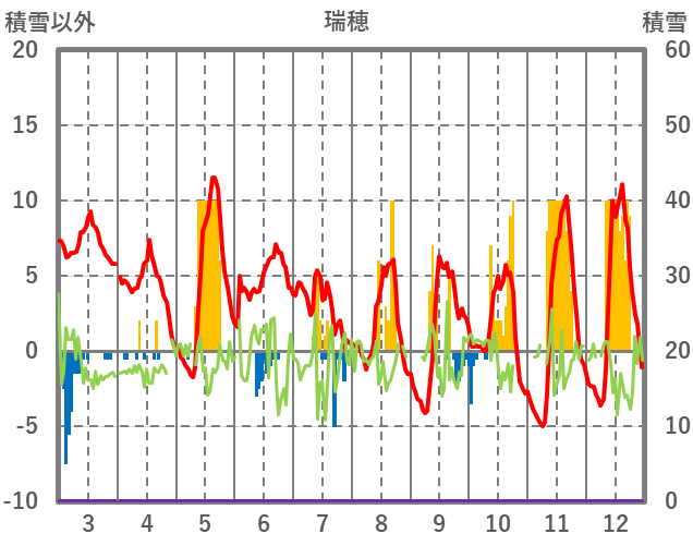 | 日 | 時 | 気温 | 降水 | 風向/風速 | 日照 | 積雪 | 降雪 |