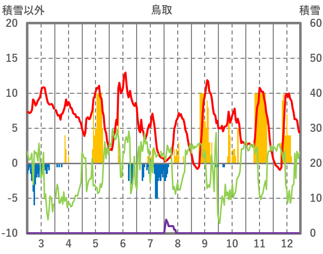 | 日 | 時 | 気温 | 降水 | 風向/風速 | 日照 | 積雪 | 降雪 |