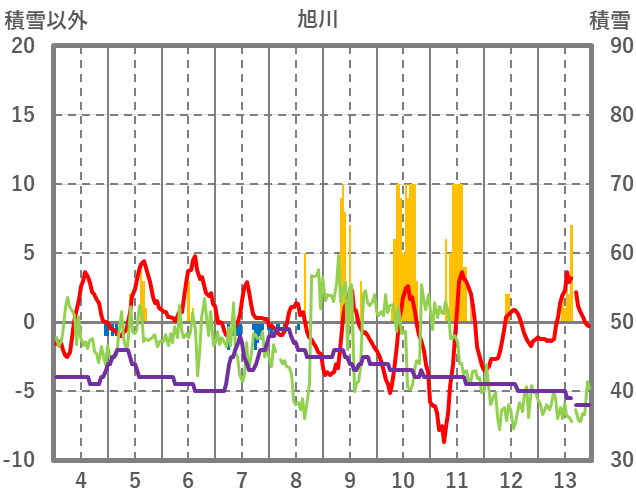| 日 | 時 | 気温 | 降水 | 風向/風速 | 日照 | 積雪 | 降雪 |