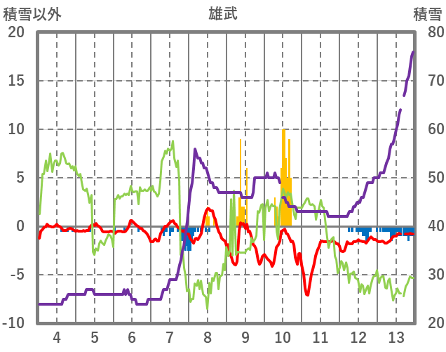 | 日 | 時 | 気温 | 降水 | 風向/風速 | 日照 | 積雪 | 降雪 |