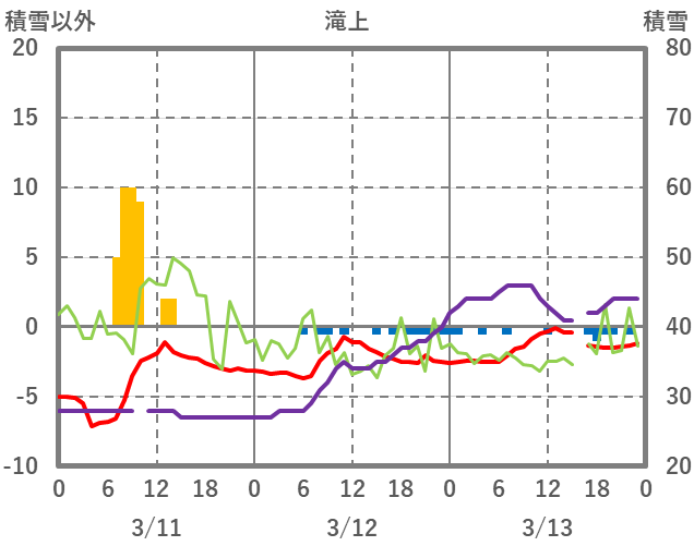 | 日 | 時 | 気温 | 降水 | 風向/風速 | 日照 | 積雪 | 降雪 |