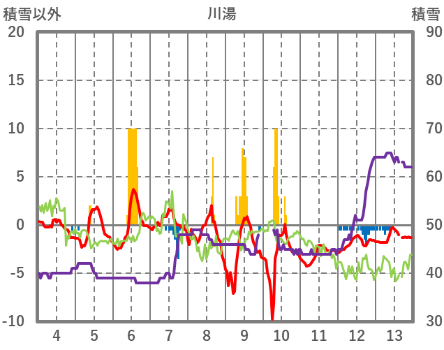 | 日 | 時 | 気温 | 降水 | 風向/風速 | 日照 | 積雪 | 降雪 |
