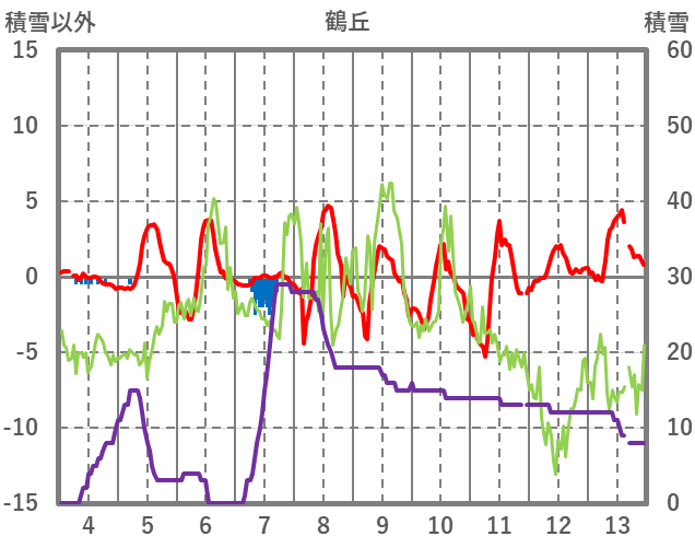 | 日 | 時 | 気温 | 降水 | 風向/風速 | 日照 | 積雪 | 降雪 |