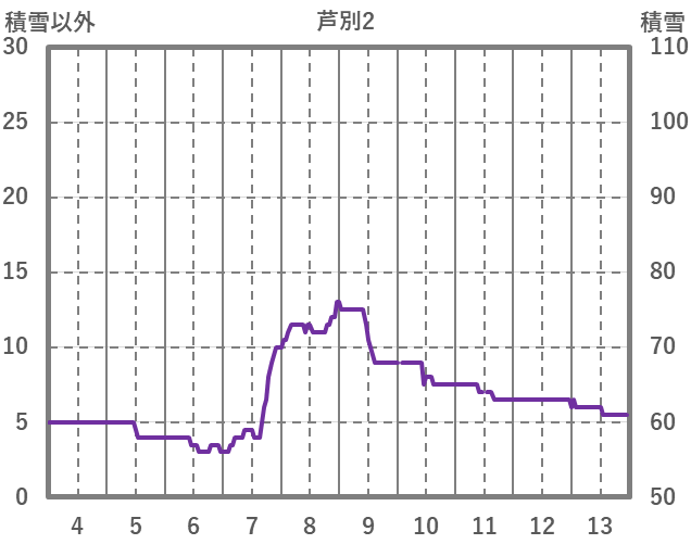 | 日 | 時 | 気温 | 降水 | 風向/風速 | 日照 | 積雪 | 降雪 |