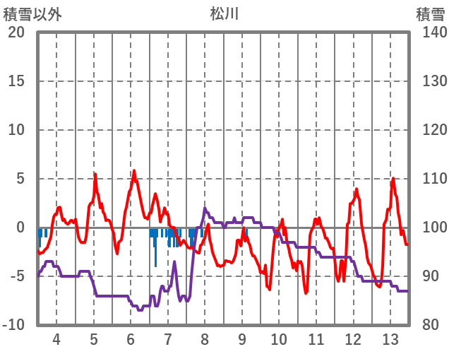 | 日 | 時 | 気温 | 降水 | 風向/風速 | 日照 | 積雪 | 降雪 |
