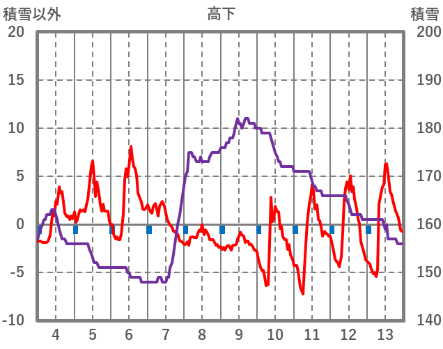 | 日 | 時 | 気温 | 降水 | 風向/風速 | 日照 | 積雪 | 降雪 |