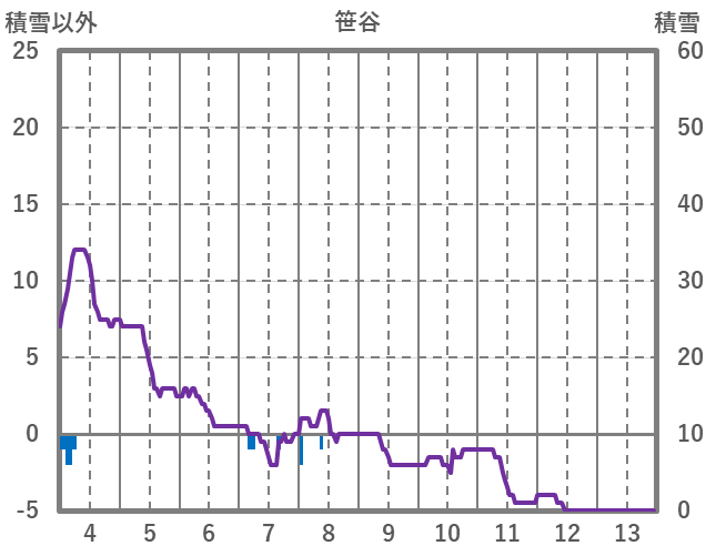 | 日 | 時 | 気温 | 降水 | 風向/風速 | 日照 | 積雪 | 降雪 |