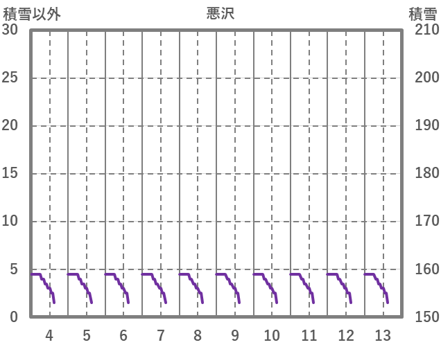 | 日 | 時 | 気温 | 降水 | 風向/風速 | 日照 | 積雪 | 降雪 |