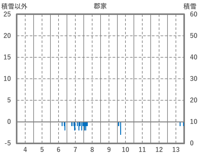 | 日 | 時 | 気温 | 降水 | 風向/風速 | 日照 | 積雪 | 降雪 |