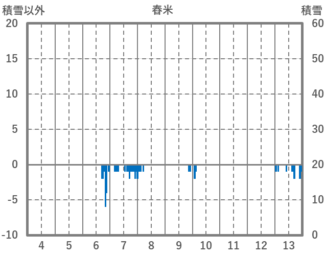 | 日 | 時 | 気温 | 降水 | 風向/風速 | 日照 | 積雪 | 降雪 |