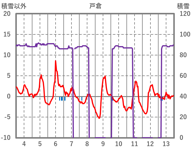 | 日 | 時 | 気温 | 降水 | 風向/風速 | 日照 | 積雪 | 降雪 |