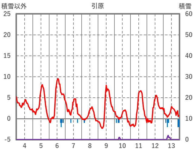 | 日 | 時 | 気温 | 降水 | 風向/風速 | 日照 | 積雪 | 降雪 |