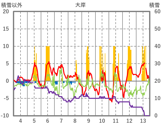 | 日 | 時 | 気温 | 降水 | 風向/風速 | 日照 | 積雪 | 降雪 |