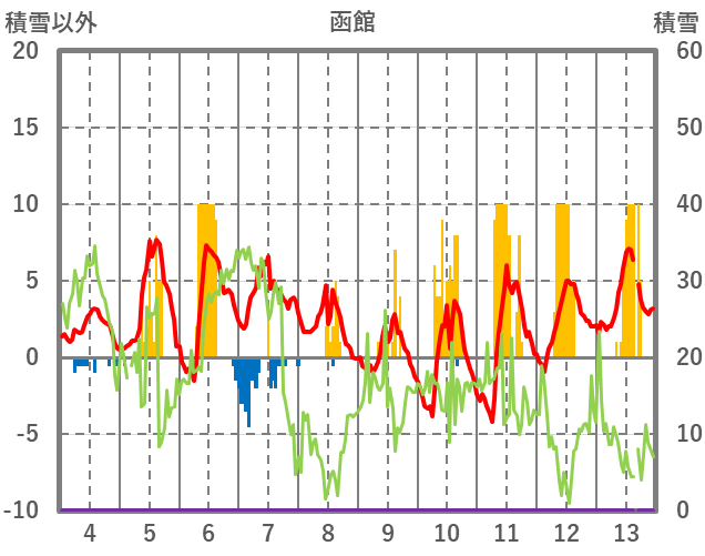 | 日 | 時 | 気温 | 降水 | 風向/風速 | 日照 | 積雪 | 降雪 |