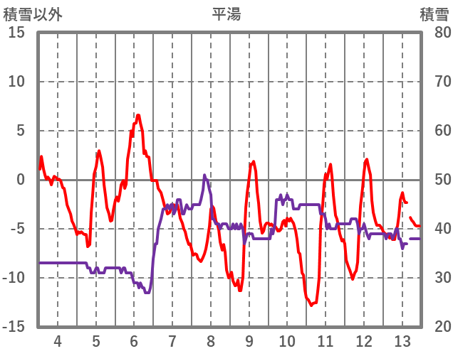 | 日 | 時 | 気温 | 降水 | 風向/風速 | 日照 | 積雪 | 降雪 |