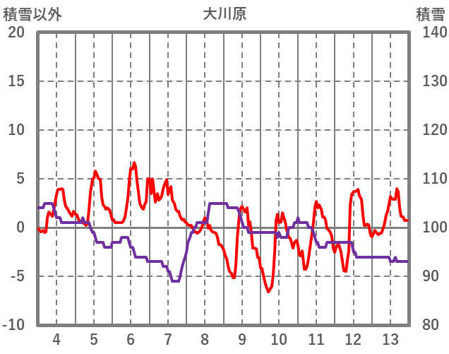 | 日 | 時 | 気温 | 降水 | 風向/風速 | 日照 | 積雪 | 降雪 |