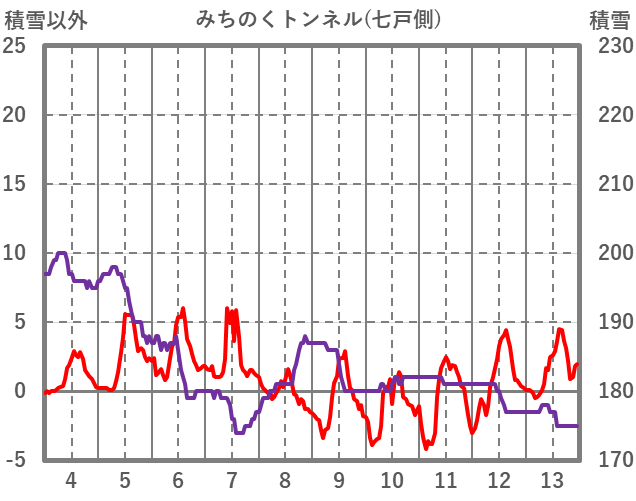 | 日 | 時 | 気温 | 降水 | 風向/風速 | 日照 | 積雪 | 降雪 |